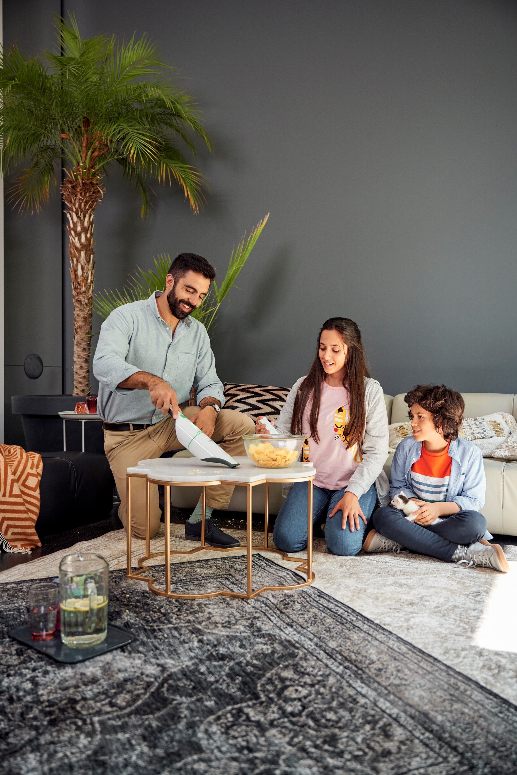 - Μια ελαφριά, ηλεκτρική σκούπα χειρός που μπορεί να χρησιμοποιηθεί παντού: στην κουζίνα, στο αυτοκίνητο, στις σκάλες...